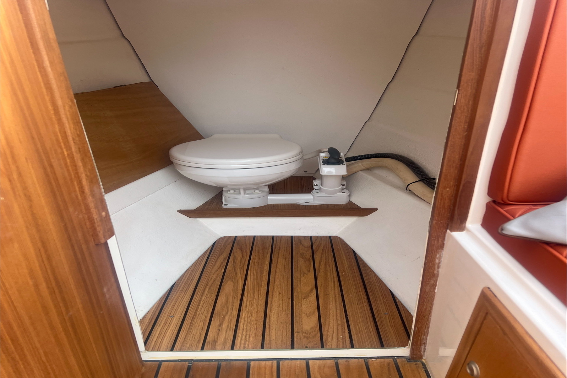 Afsluitbare toiletruimte met chemisch toilet Zonnedek met bijpassende kussens Koelbox, bovenlader met compressor Radio Bluetooth incl. 2 bijpassende watervaste speakers Biminitop met roestvrijstalen frame Afdekhoes (over de hele sloep)