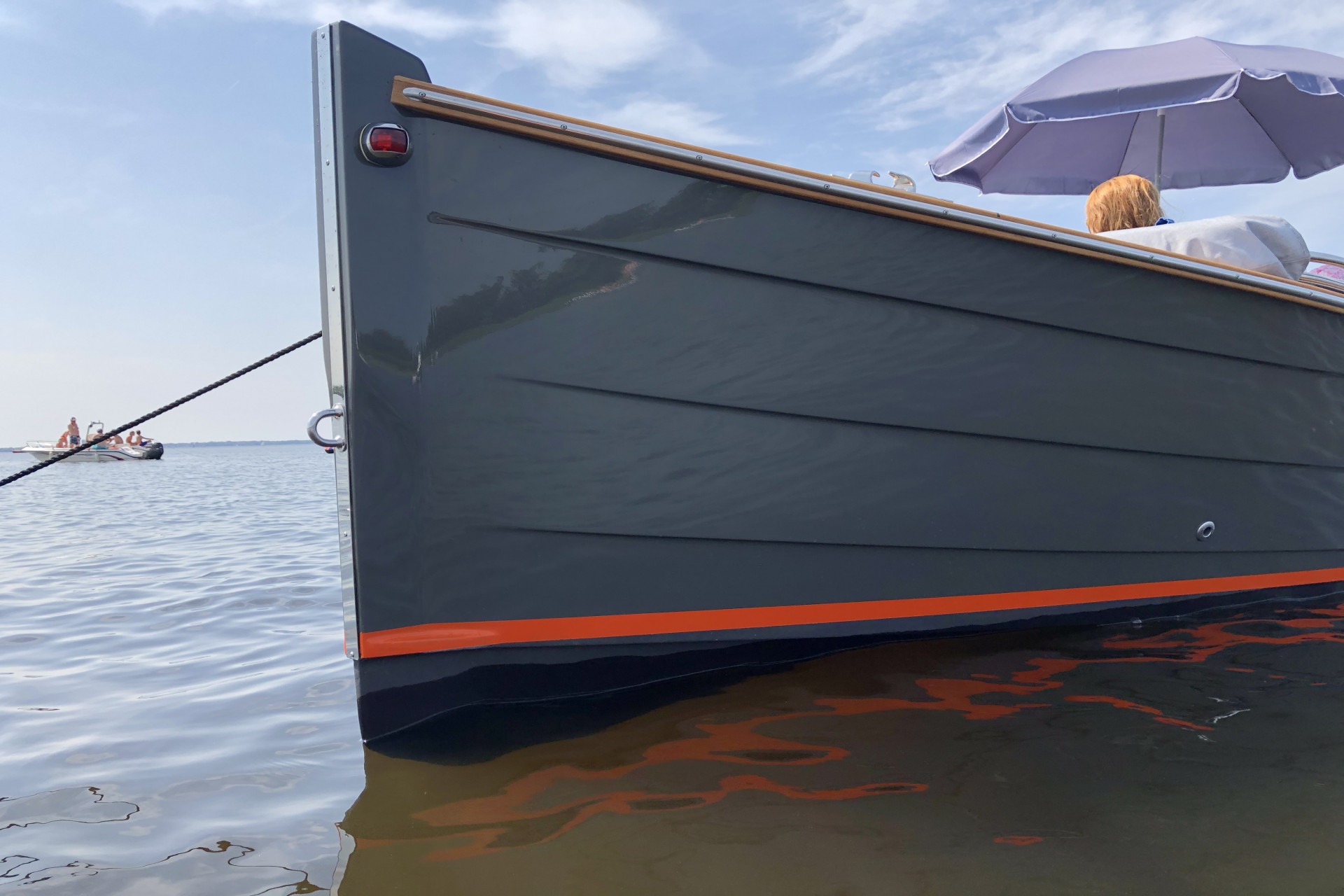 Elk detail is zorgvuldig vormgegeven: van de krachtige stijlsteven en elegante zeeg tot de fraai afgewerkte spiegel met geintregreerd zwemplateau. Hoogwaardige materialen, verfijnde lijnen en een hoogwaardige afwerking onderstrepen het luxe karakter dat kenmerkend is voor Enkhuizensloepen.