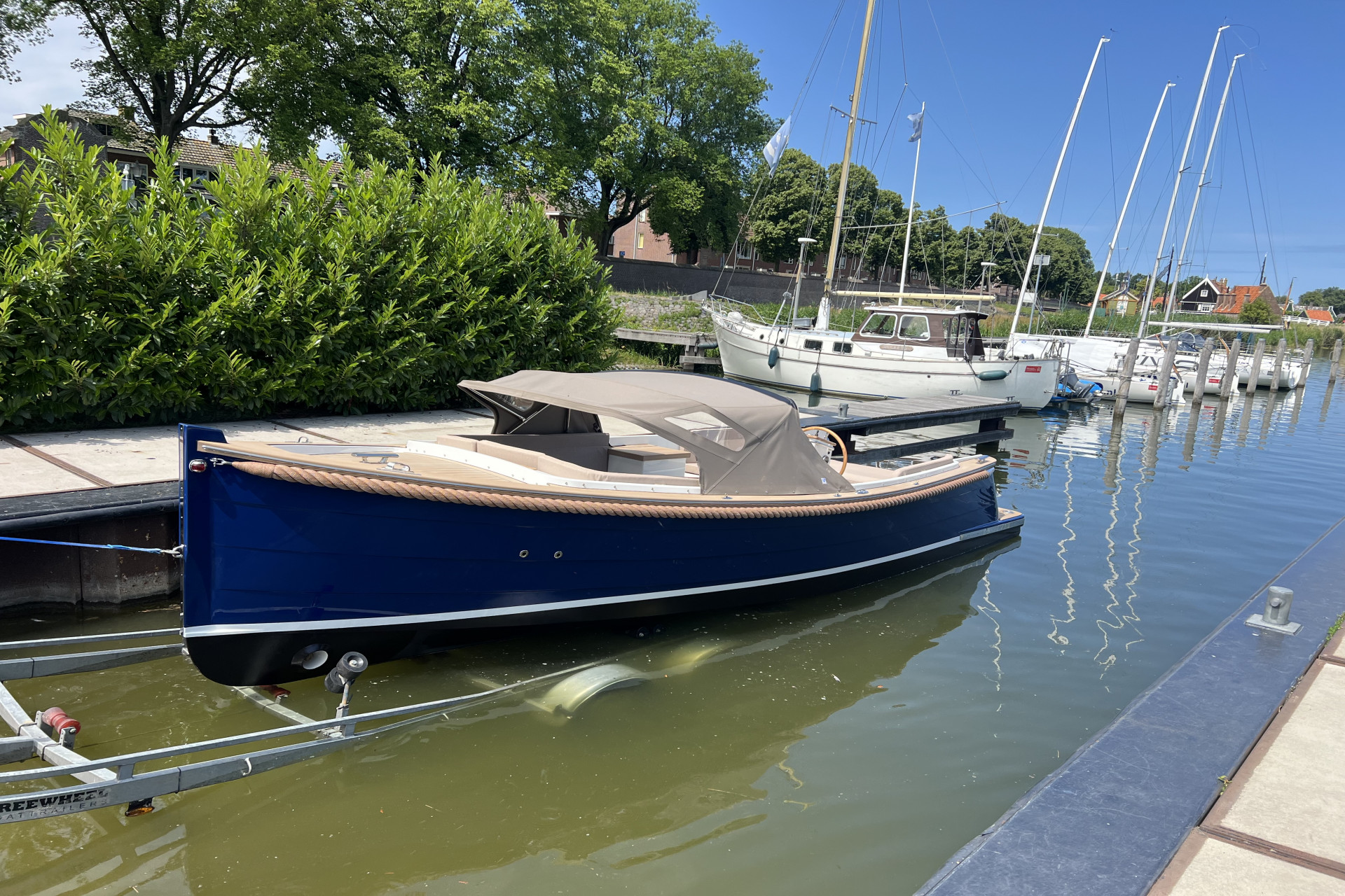 Afleveringskosten incl. halve tank diesel, 4 fenders, 4 landvasten, vlag, RVS vlaggestokhouder, naam boot en ligplaats € 925,=