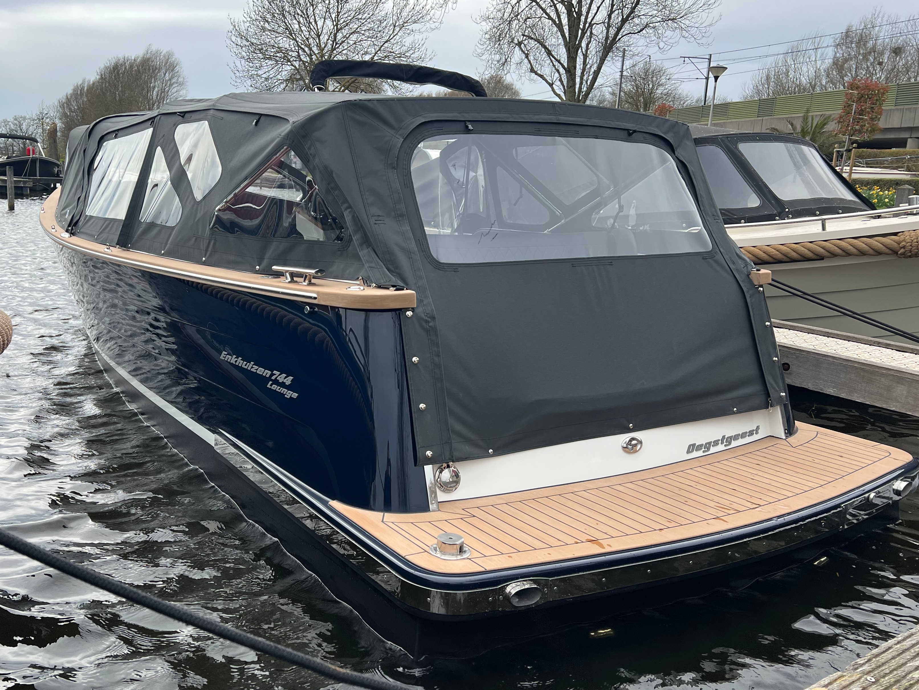 De Enkhuizen 744 lounge heeft brede instaptreden met goede, stevige steunmogelijkheden. En omdat we iedere Enkhuizensloep met de hand voor u bouwen, kunnen we desgewenst een extra instaphulp voor u monteren. Zo wordt niet alleen het varen, maar ook het in- en uitstappen veiliger.
