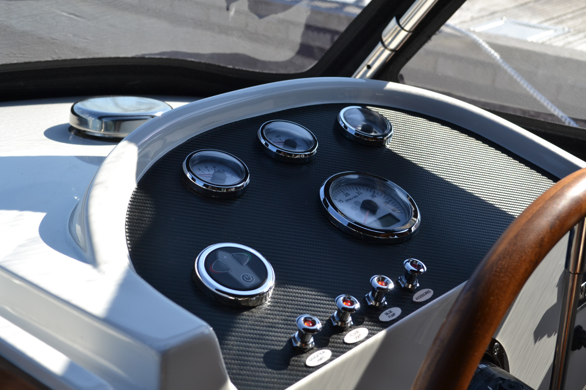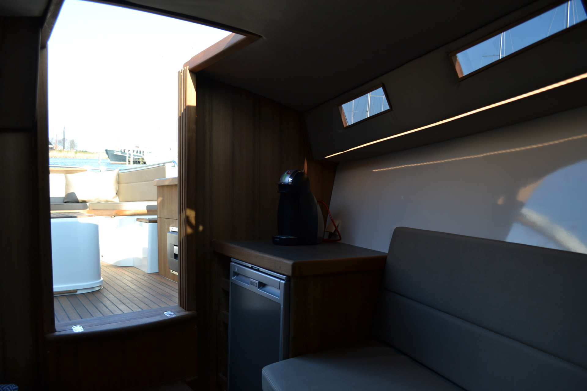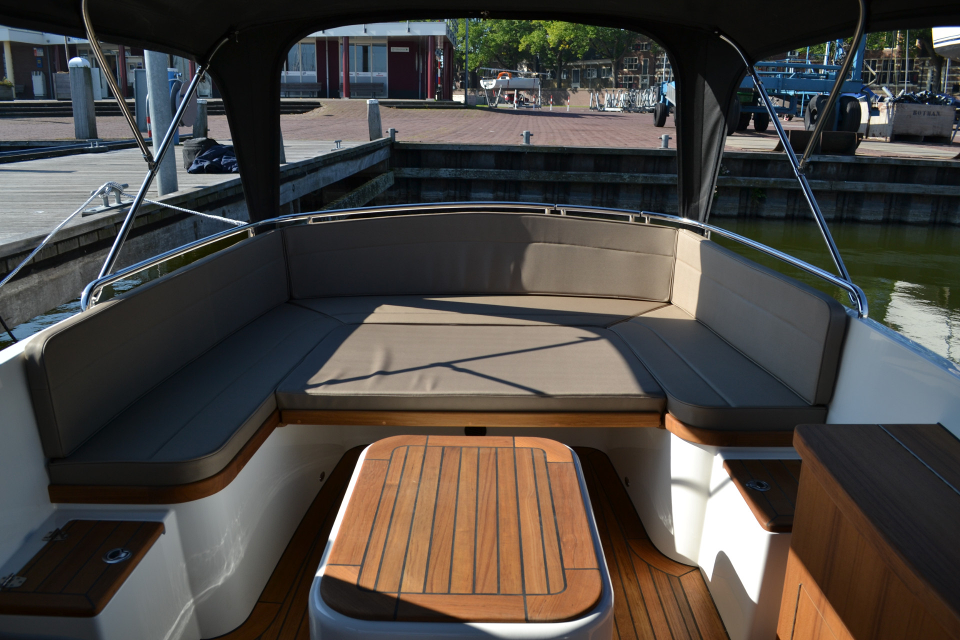 Een handig ingedeeld interieur met goed toegankelijke bergruimte en weggewerkte accessoires zorgt er voor dat er geen losse spullen in de kuip hoeven te slingeren. De vloer van de 744 Cruiser is op twee niveaus gelegd: de stuurman zit hoog, de passagiers lager. Bovendien is de stuurpositie aan te passen aan uw persoonlijke voorkeur: aan het kajuitschot of achter in de kuip zoals bij de tenders gebruikelijk is.
