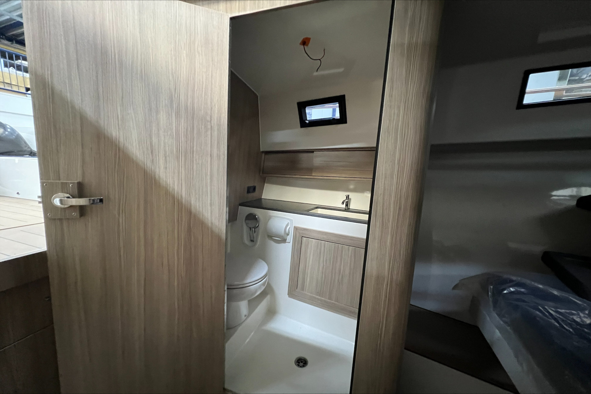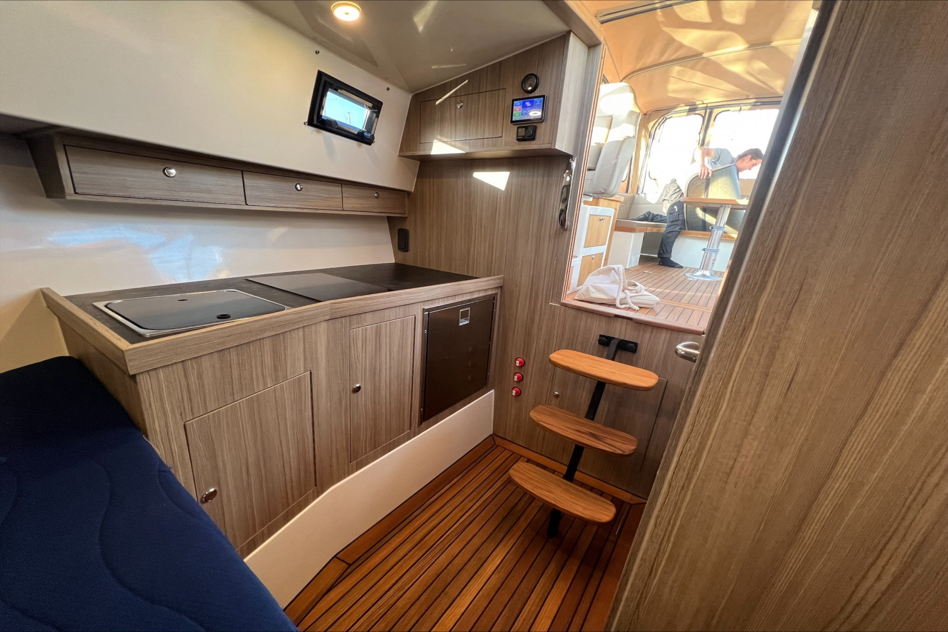 Afsluitbare teakhouten kajuitdeur, verzonken in vloer