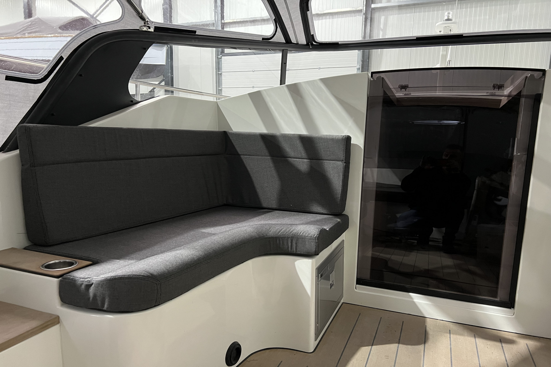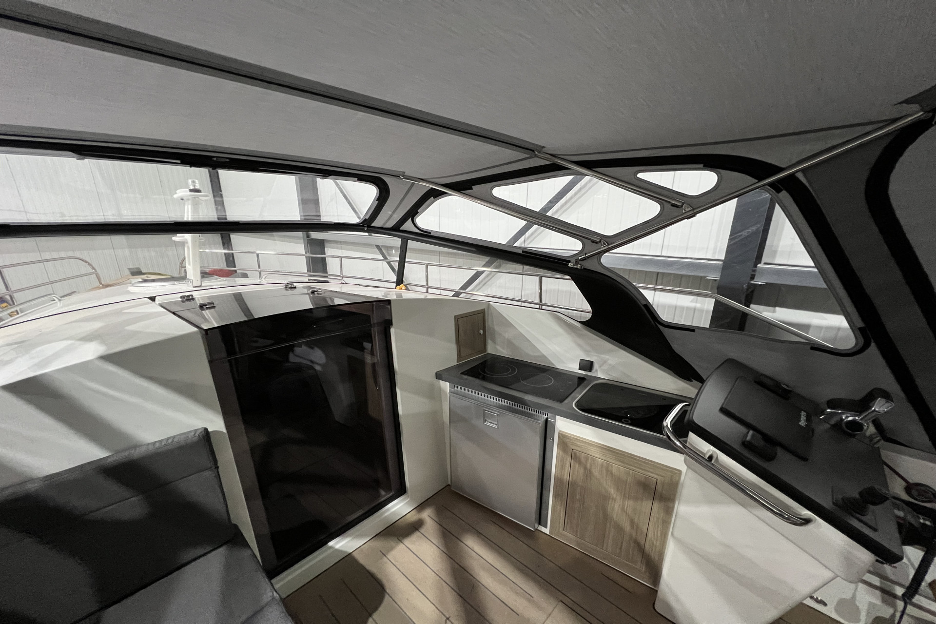 Een handig ingedeeld interieur met goed toegankelijke bergruimte en weggewerkte accessoires zorgt er voor dat er geen losse spullen in de kuip hoeven te slingeren. De vloer van de 922 Cruiser is op twee niveaus gelegd: de stuurman zit hoog, de passagiers lager. Bovendien is de stuurpositie aan te passen aan uw persoonlijke voorkeur: aan het kajuitschot of achter in de kuip zoals bij de tenders gebruikelijk is.