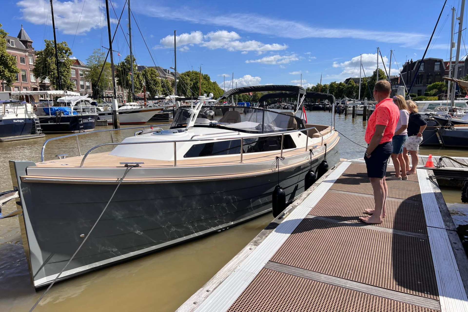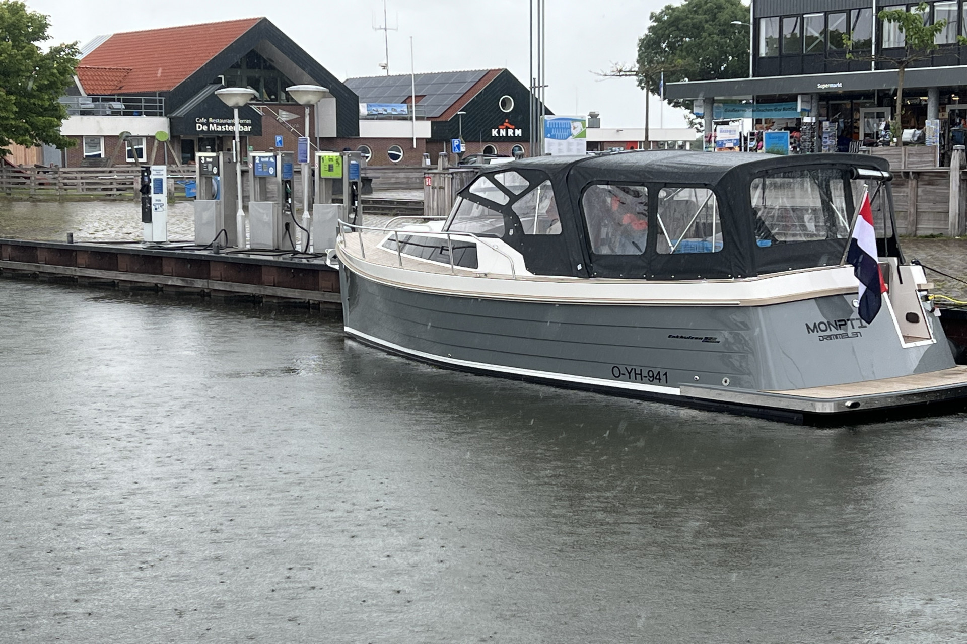 Afleveringskosten af Enkhuizen incl. halve tank diesel, 4 fenders, 4 landvasten, vlag, RVS vlaggestokhouder, naam boot en ligpl € 1500,=