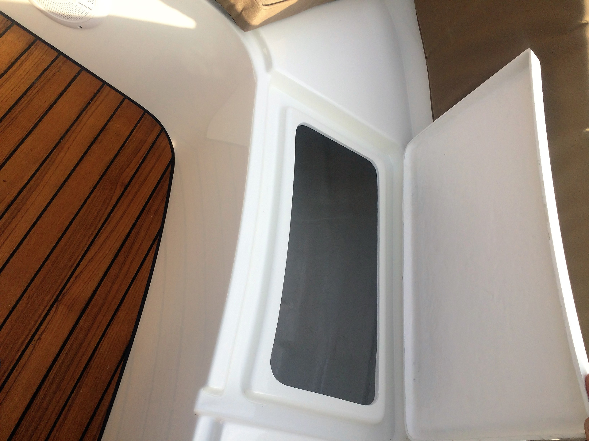 Teakhouten lijsten op de motorkast