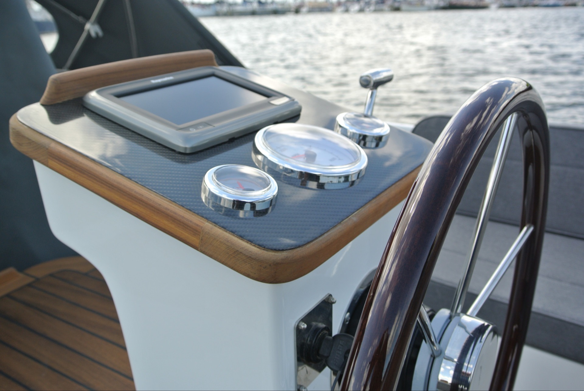 Massief teakhouten potdekselTeakhout op de motorkast