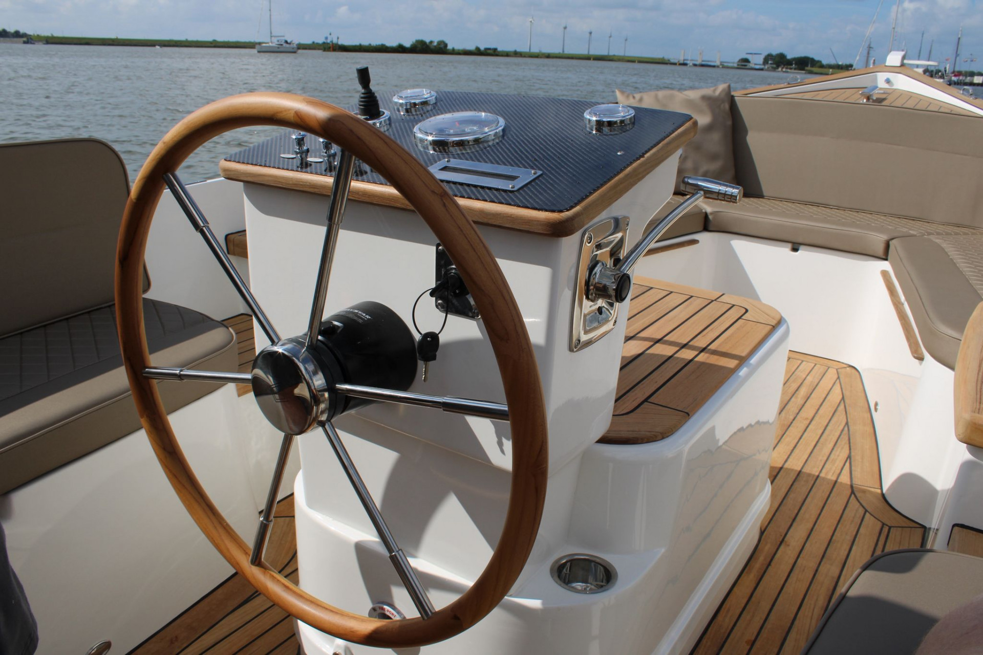 Massief teakhouten potdekselTeakhout op de motorkast