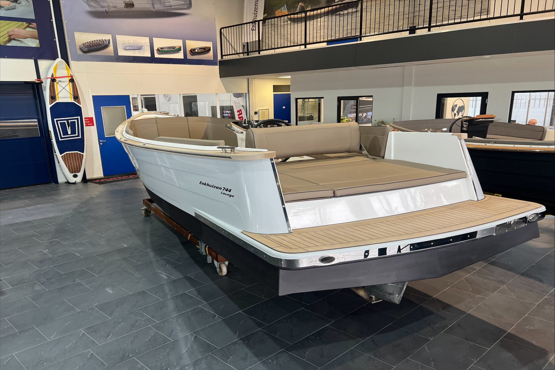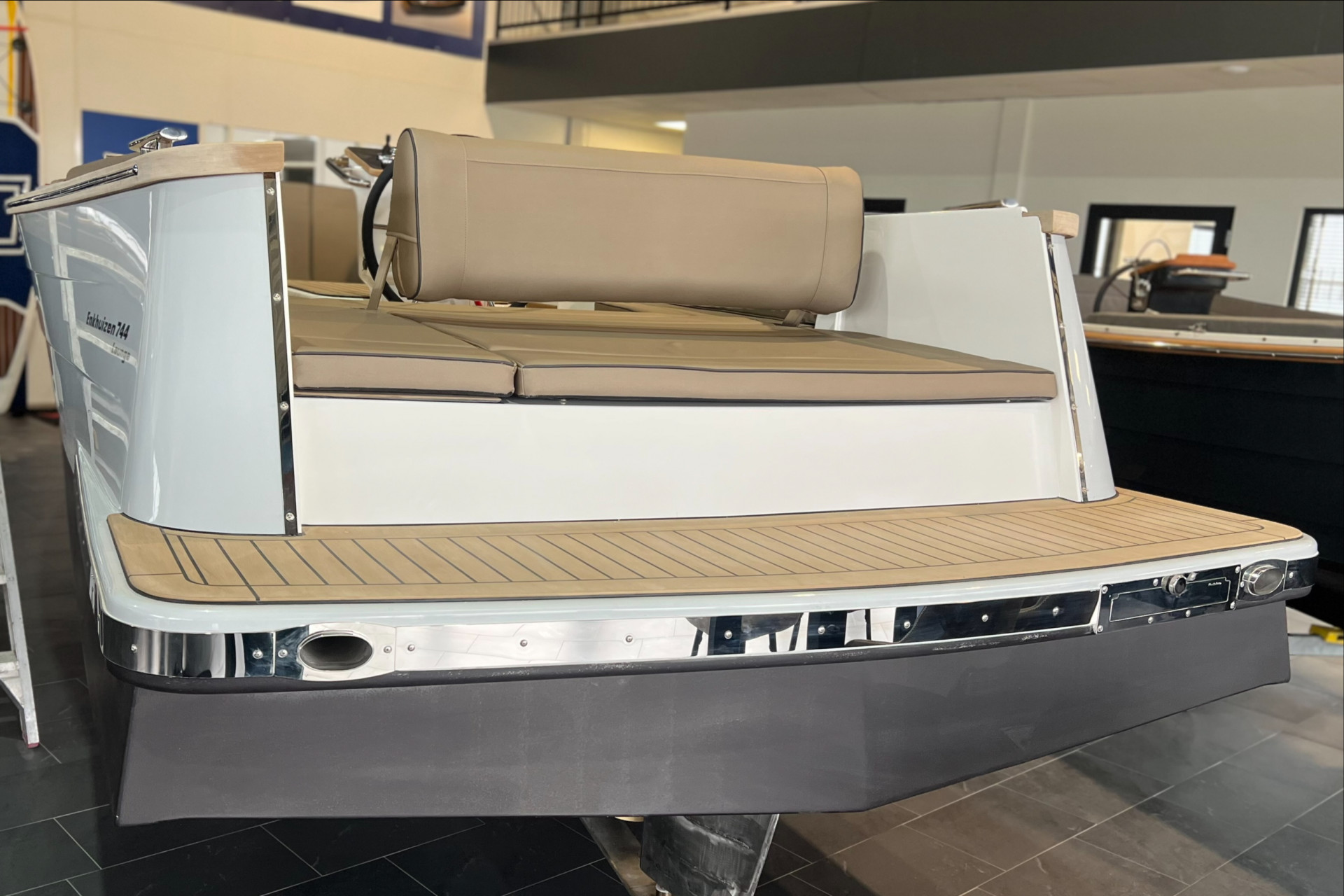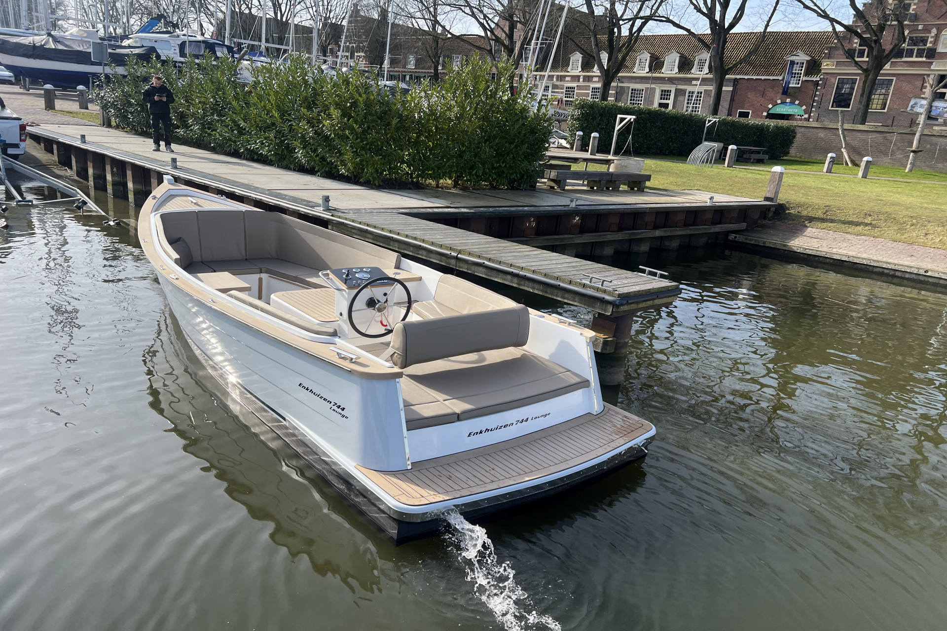 De enkhuizen 744 lounge is een royale en bijzonder ruime tender met een innovatief interieur en verfijnde vaareigenschappen. Dankzij de variabele diepgang,uitstekende wendbaarheid en uitgebalanceerde rompvorm bied deze boot prestaties die passen bij een modern ontwerp, gecombineerd met het comfort en de uitstraling van deze tijd. Een snelle, stijlvolle boot voor wie luxe en ruimte centraal stelt.Afmetingen